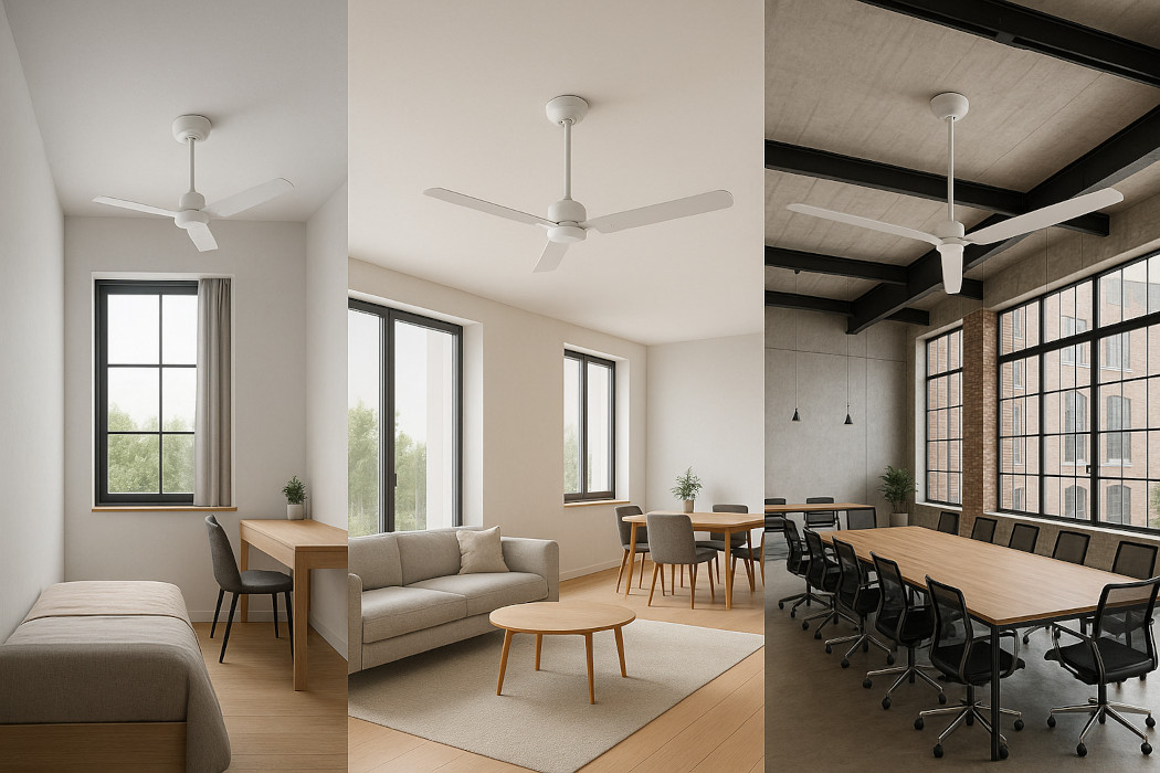 - Petites pièces : Choisissez un ventilateur compact ou Exhale pour les pièces fermées.